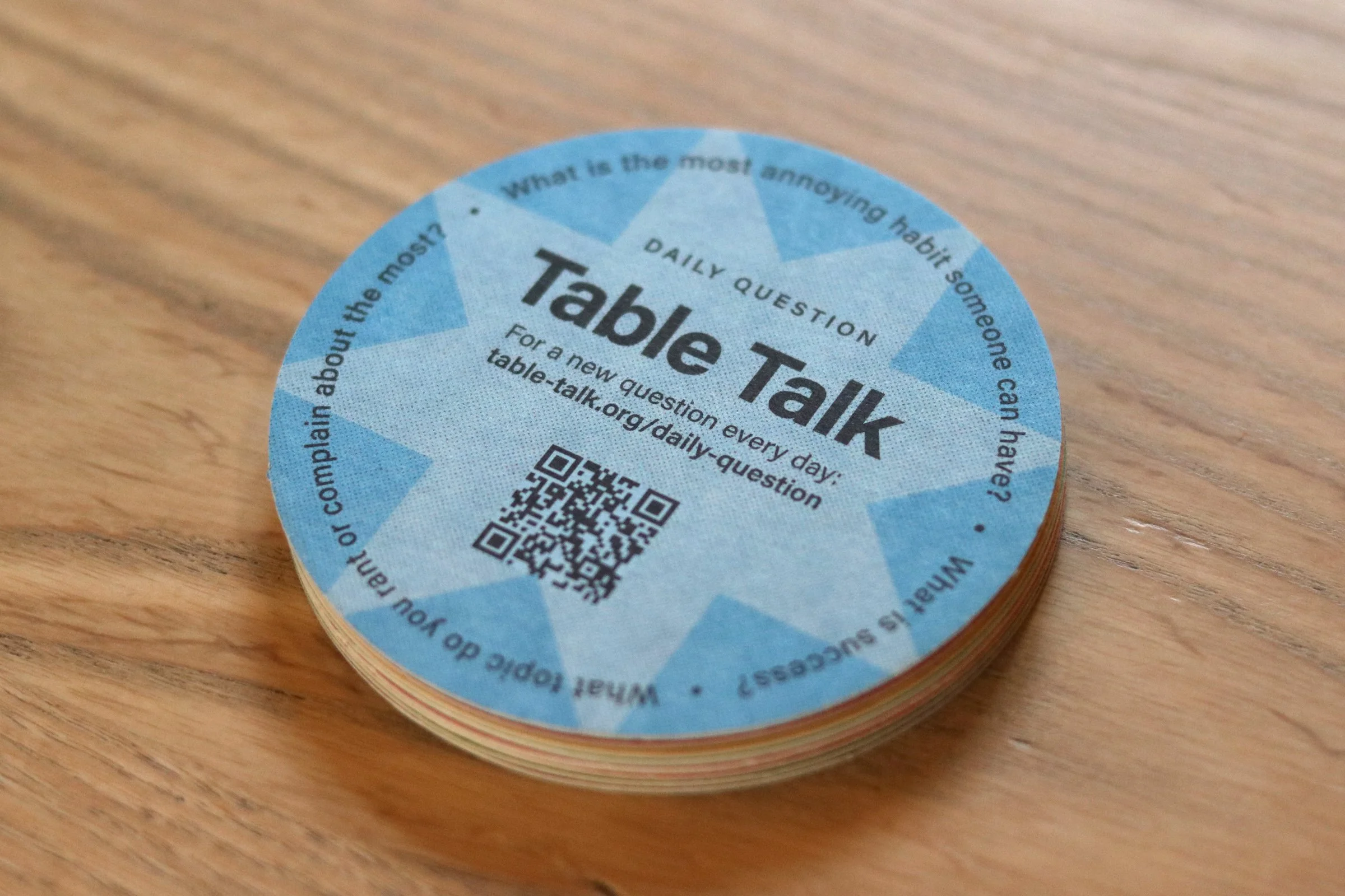These coasters make it really easy to spark interesting and meaningful conversation, and it can be different everyday with the QR code that gives you new questions!